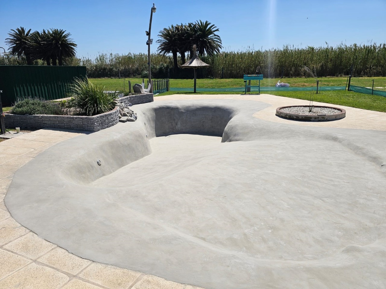 Piscina en hormigon proyectado estilo playa de 11,00 x 4,00 de nado mas veredas perimetrales.